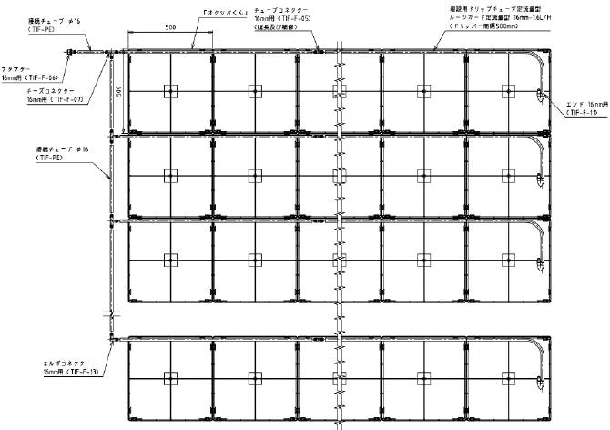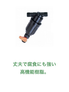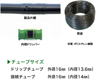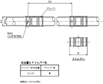 手前と末端の灌水量が一定量。圧力・流量変化に左右されない定流量型のドリップチューブ。ドリッパーへの根の浸入を完全にシャットアウトし、根詰りを防止する特別な機能が付加されています。